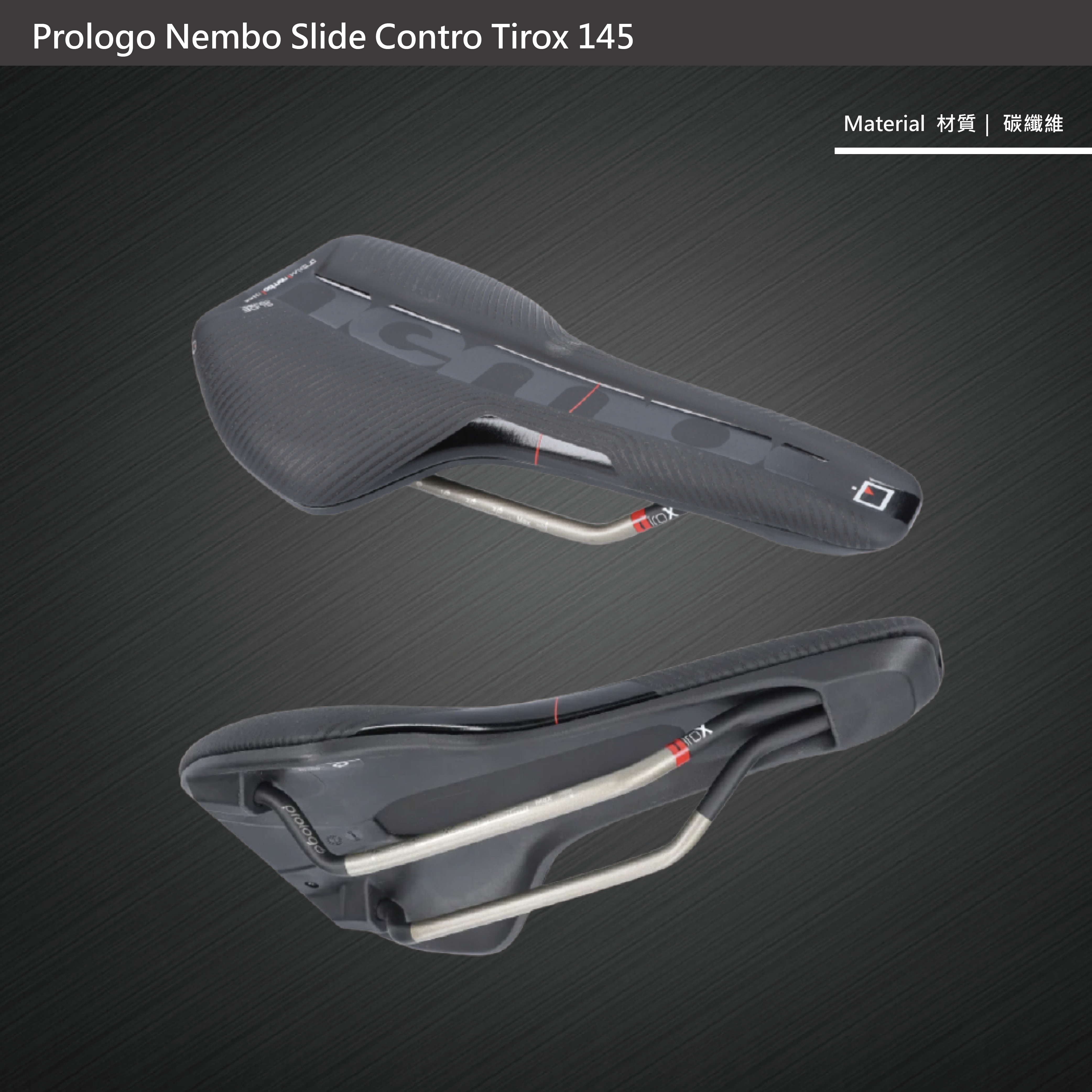 Nembo Tirox 145mm 鞍座具有扁平形狀和寬度的尺寸(245x135mm);更寬的車頭可提高騎乘者的穩定性和對自行車的控制;且後部呈圓形,方便進出鞍座。